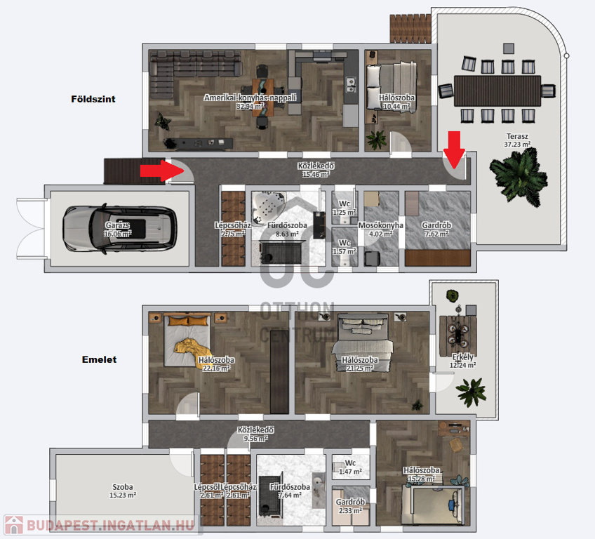 - Alsó szint állapota jó, míg a felső szint befejezésre vár saját igény szerint.