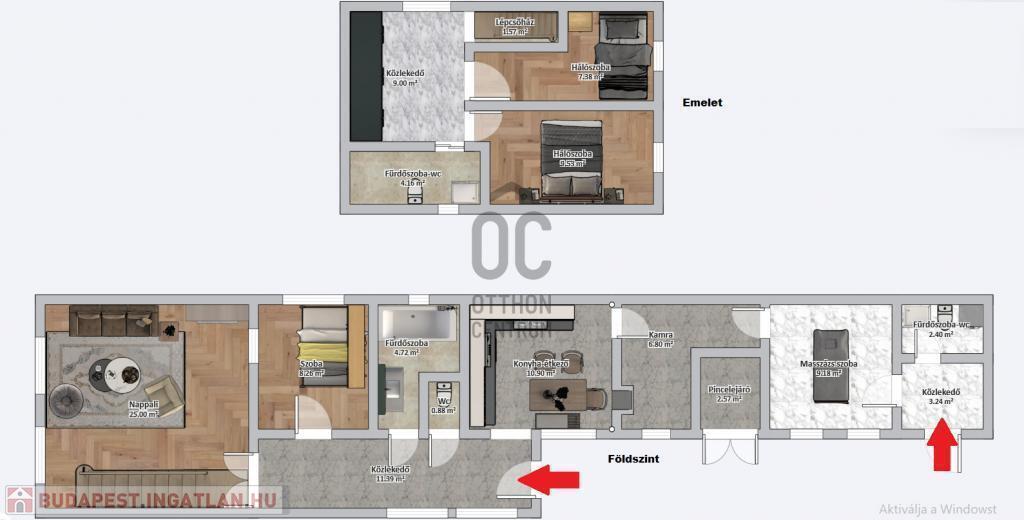 - Az épület hátsó részében kialakításra került egy masszázs szalon, különálló fürdőszobával.