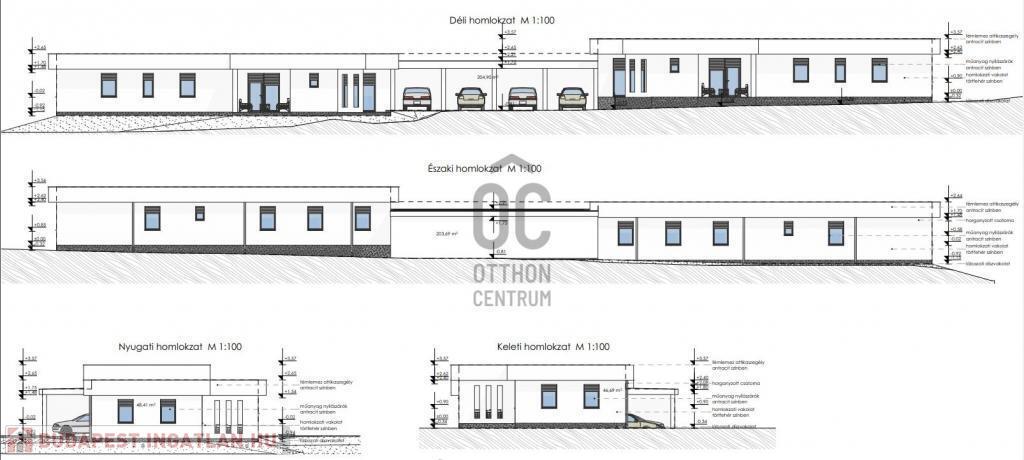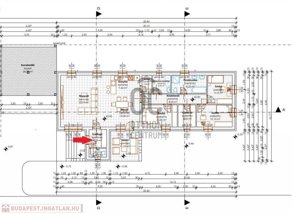 - Felosztása: szélfogó, WC, amerikai konyhás nappali, közlekedő, kamra, háztartási helyiség, fürdőszoba, gardrób, 3 szoba és terasz.