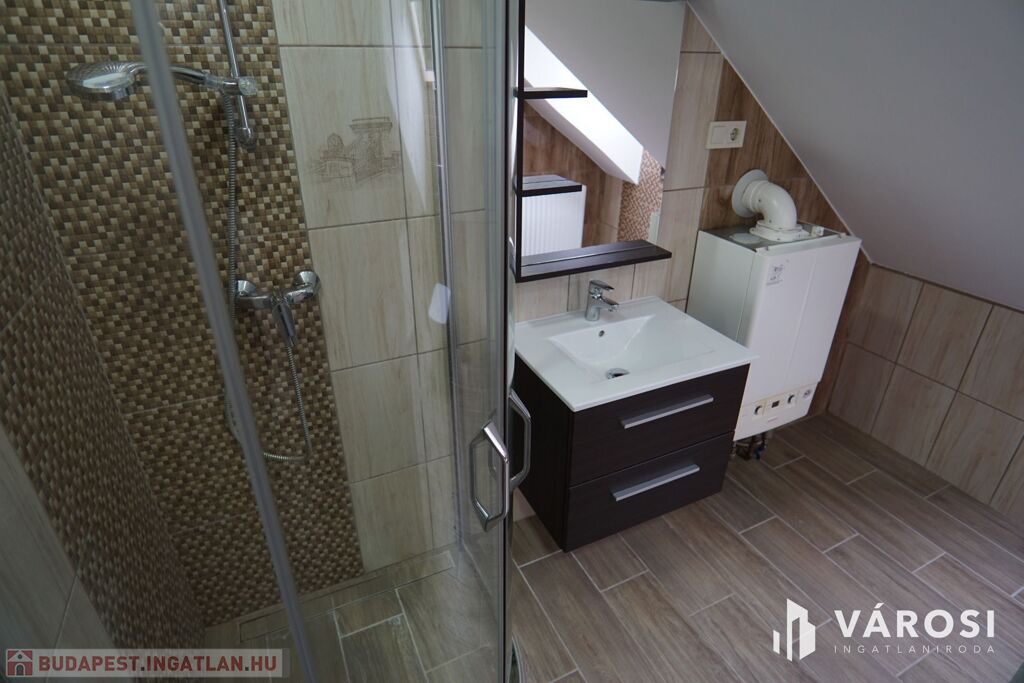 Tetőér: közlekedő, szoba, zuhanyzós fürdő mellékhelységgel együtt.