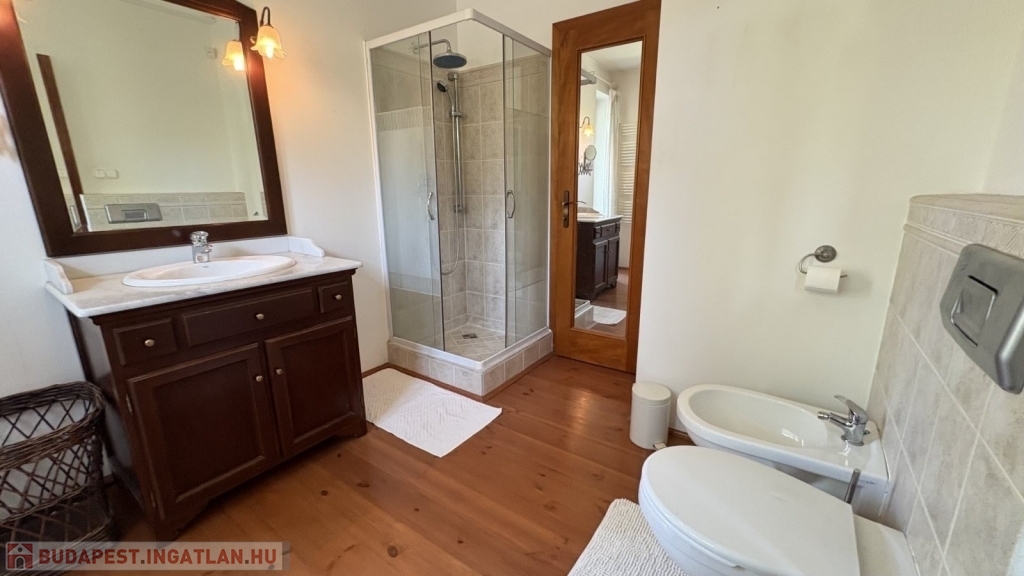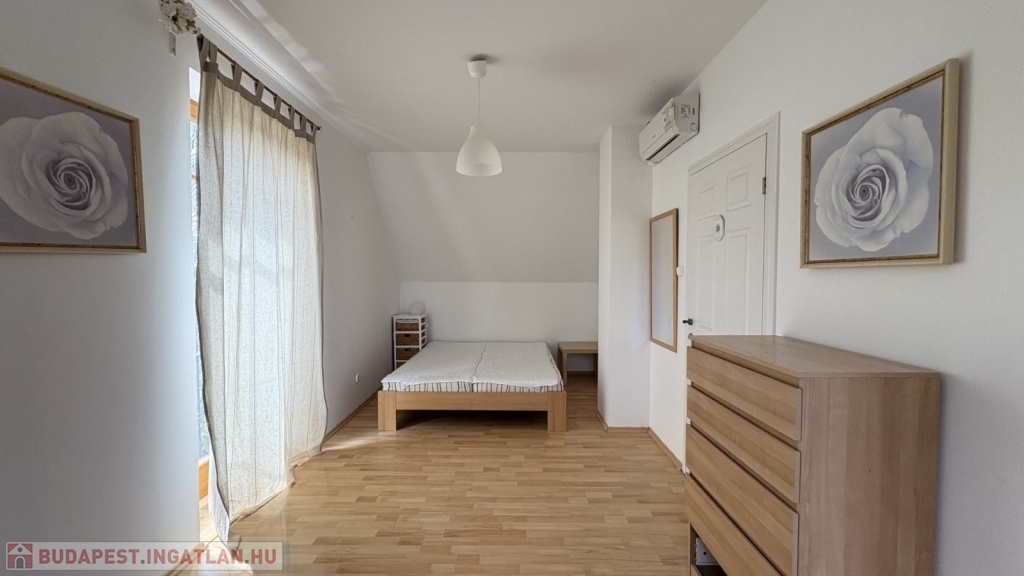 A képen látható bútorok a megegyezés tárgyát képezik. A központ, a buszmegálló 5 perces sétával elérhető . A környék felszereltsége kiváló, orvosi rendelő, kisbolt, patika, szupermarket, cukrászda a közvetlen közelben. Az általános iskola szintén 5 perces sétával megközelíthető, az Amerikai iskola autóval 5 perc, busszal 3 megálló. Az ingatlan tehermentes, az ár irányár.