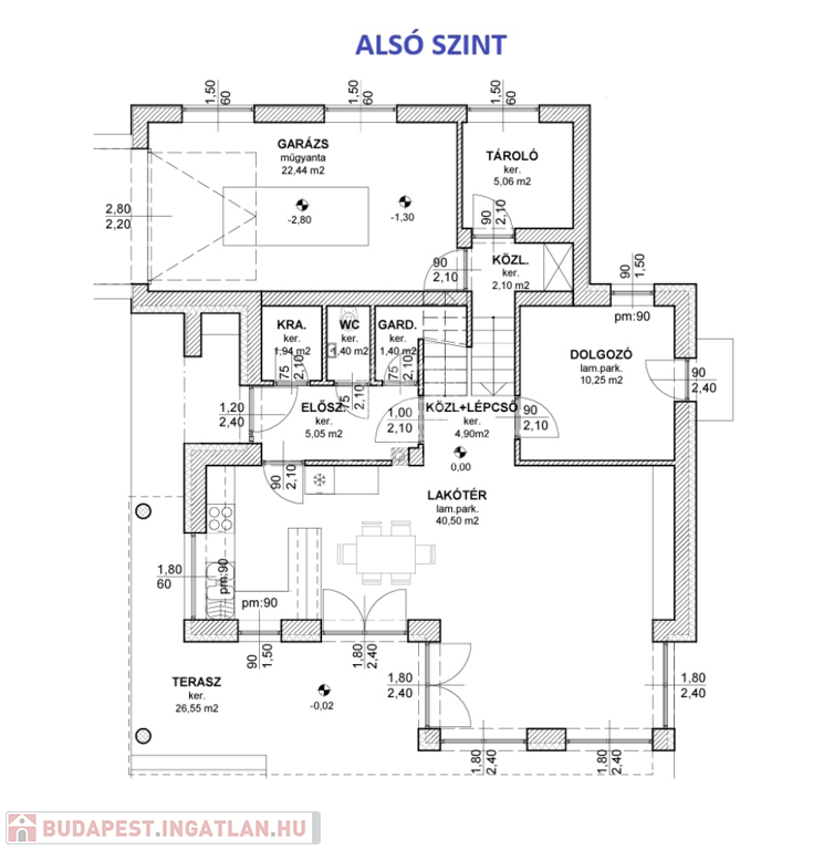- Amerikai konyhás nappali, terasz kapcsolattal,