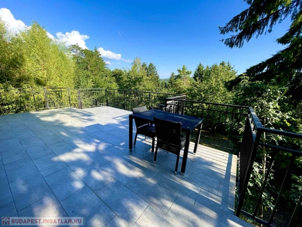 Az ingatlan két szintes lakóterű földszinti részen teraszkapcsolattal, emeleti szinten több erkéllyel, melyről csodás panoráma tárul elénk.