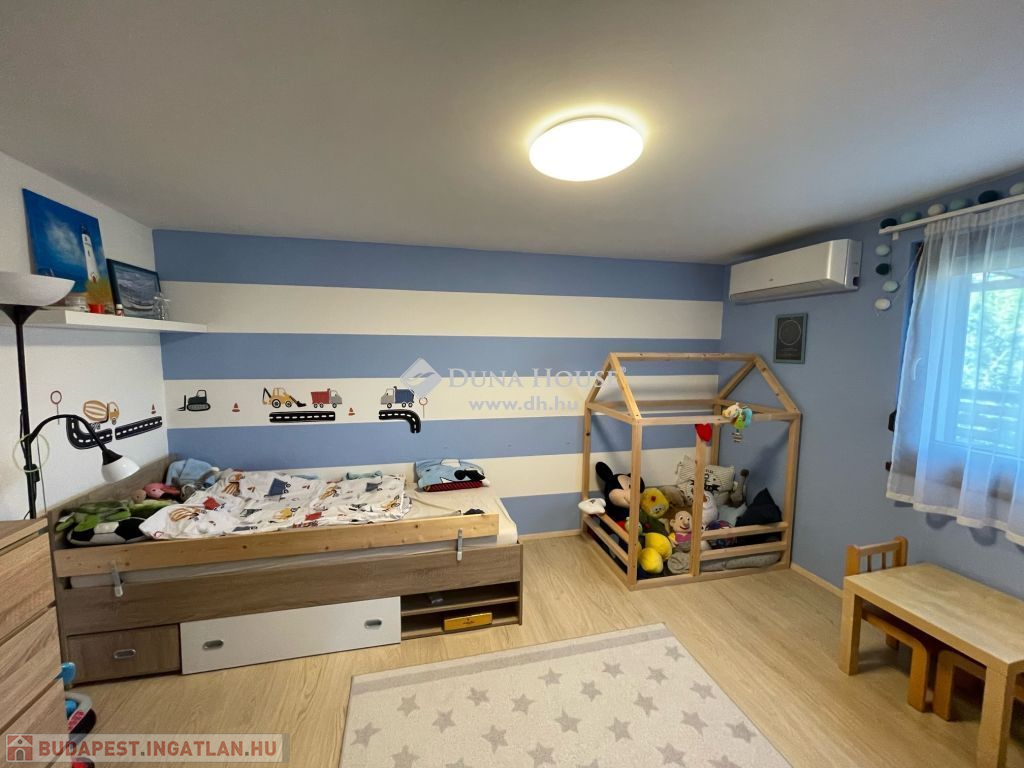 Nagykovácsi, Zsiros-hegy felöli részen eladó egy erdőközeli hangulatos és energiatakarékos, nagyon jó állapotú 240nm-es családi ház.A családi ház 2011-ben épült, jó minőségű alapanyagok és nyílászárók felhasználásával. Az ingatlan fűtése gázkazánnal (padlófűtés) történik, de 4 db H tarifás hűtő-fűtő klímával ill. kandallóval is lehetséges. A földszinten egy légtérben a nappali-étkező-konyha egység, illetve egy tágas előszoba- közlekedő, tároló, hálószoba, mosókonyha-fürdő wc-vel, külön, wc és egy dupla garázs található.Az étkező-konyhából nyílik egy fedett kertkapcsolatos terasz.Az emeleten 3 hálószoba és két fürdőszoba szolgálja a kényelmet, amiből a szülői háló és az egyik fürdőszoba elszeparált, szaunával felszerelt.Az emeleten nagyméretű, kényelmes terasz gondtalan pihenésre ad lehetőséget részleges panorámával.Kert gondozott, gyerekek részére kültéri játszótérrel felszerelt. A kertben az árnyékos fák lomjai alatt függőágyban is pihenhetünk.