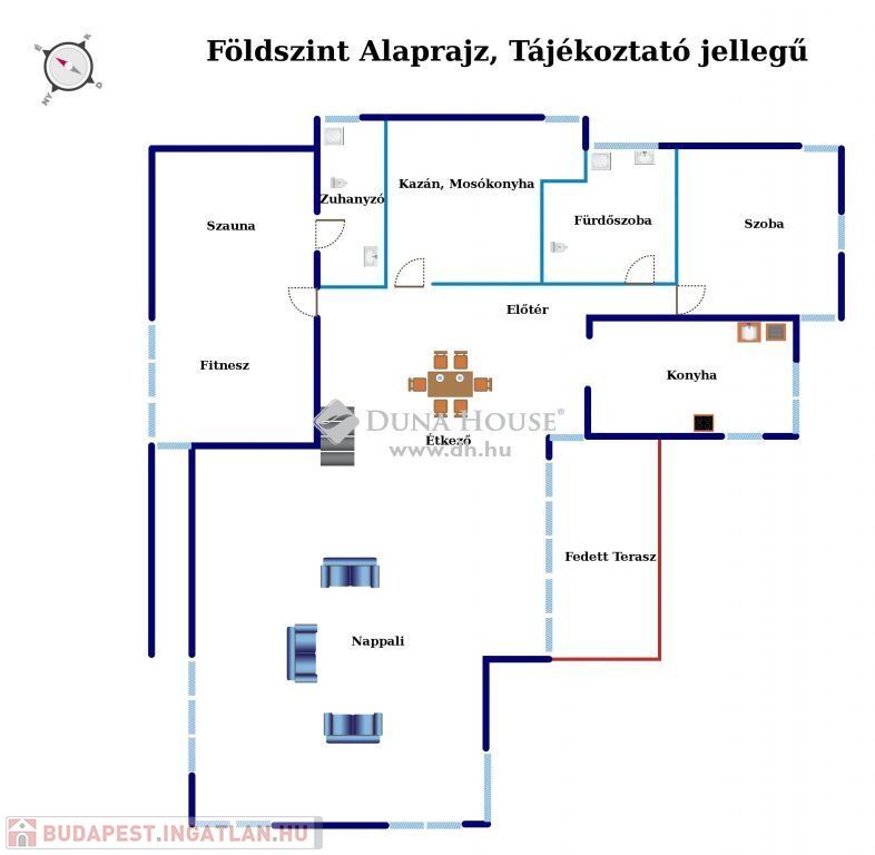 Az ingatlan földszintjén található egy teljesen felszerelt konyha, tároló, mosókonyha, egy hálószoba, valamint két fürdőszoba zuhanyzóval és mosdóval, egy tágas nappali étkezővel - kandallóval és hatalmas - 33 négyzetméteres kertkapcsolatos terasszal is, mely tökéletesen alkalmas a kikapcsolódásra és ahonnan élvezheted a 3,2 X 10 m kültéri fűthető úszómedence minden előnyét.