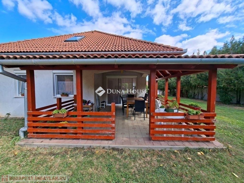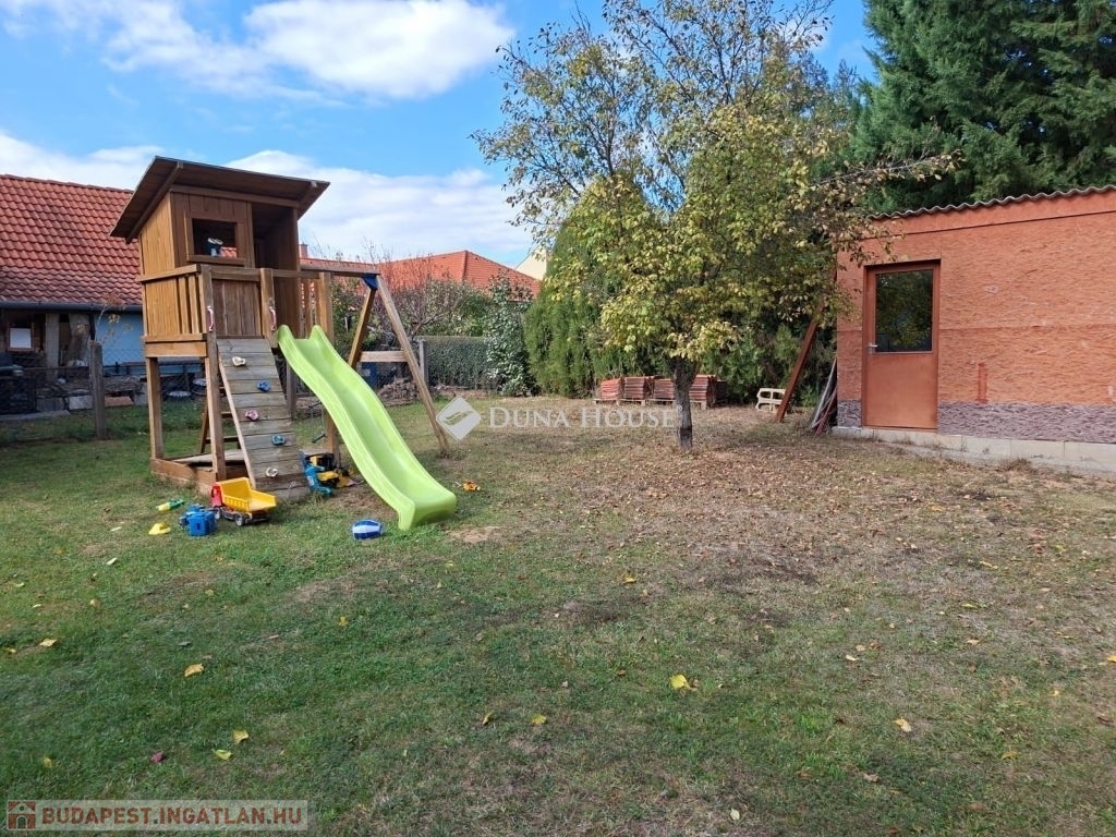 Eladó 2003-ban Porotherm 38 N+F téglából épült kétszintes családiház 25 nm-es fűtött garázzsal. A ház összesen 160 nm nettó. A földszint 85 nm és a tetőtér kb. 100/75 nm.Tetőtér beépítése 1,5 éve kezdődött folyamatban van. Készültségi szint kb 60 %-os. Fűtés, víz, villany előkészitve teljesen.Új Roto R7 műanyag ablakok a tetőtérben, Rehau kétrétegű műanyag ablakok a földszinten redőnnyel és szúnyoghálóval mindkét szinten. A földszint 2,5 éve teljesen fel lett újítva, kivéve a fürdőszobát.Külön két fürdő/WC és egy külön WC a földszinten. Grohe csaptelepekkel.Panasonic 5.3 Kw-os klíma a földszinten.Amerikai konyhás nappali minőségi Bosch beépített gépekkel.Földszinten egy 15 nm-es szoba, a tetőtérben három nagyobb.Mosókonyha/háztartási helyiség és kamraWiessmann 24 Kw-os Gázkazán Radiátoros fűtéssel, a két szint külön termosztáttal ellátott, egyedileg állítható.A melegvizet bojler éjszakai árammal vagy a gázkazán is biztosítja.25 nm-es fedett terasz, közvetlen kapcsolat a kerttelUtp hálózati csatlakozás kiépítve az egész házban.3 X 25 A ipari áram.3 + 8 m3- ciszternába bevezetve az esővíz csatorna.Parkosított, gondozott udvar örökzöldekkel.