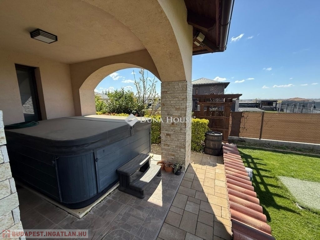 Budapesttől mindössze 25 percre !!Prémium családi ház Nagytarcsán mediterrán hangulat, modern kényelem családias szép környezetben .Nagytarcsa kedvelt , új építésű házakkal körül ölelt részén kínáljuk megvételre ezt a 2018-ban épült, igényesen kialakított családi házat, amely 893 m²-es, gondozott telken helyezkedik el.Az ingatlan tágas, világos terekkel rendelkezik:Kialakítása : amerikai konyhás nappali, 3 kényelmes hálószoba, 2 fürdőszoba, gardrób szoba kamra háztartási helység Ideális választás nagyobb családok számára is.A ház belső kialakítását ízléses színek, prémium burkolatok és mediterrán hangulat jellemzi. A hálószobákban laminált parketta, a többi helyiségben magas minőségű kő- és burkolatok kerültek beépítésre.Extrák, amelyek valódi értéket képviselnek: elektromos redőnyök kamerarendszer és riasztórendszer automata öntözőrendszer 5 kW-os napelem rendszer az alacsony rezsiért 2 db klímaberendezés beépített szekrények és gépesített konyha a vételár részét képezik 41 m²-es, elektromos kapunyitós garázsEz az ingatlan tökéletes választás azoknak, akik modern, energiatakarékos, azonnal költözhető otthont keresnek nyugodt, mégis jól megközelíthető környezetben. Ne hagyja ki ezt a kivételes lehetőséget tekintse meg személyesen is!