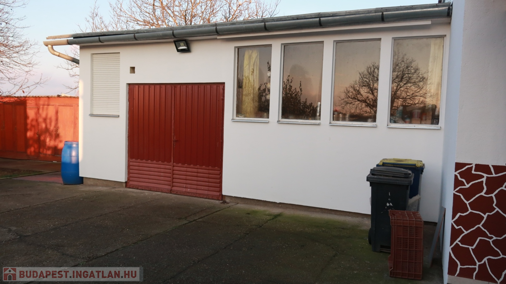 Az udvaron:  könnyűszerkezetes lemez garázs, műhely, melléképület kapott helyet.