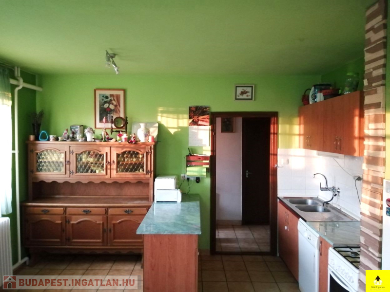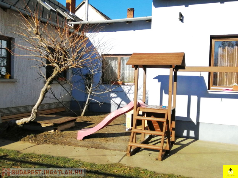 Az utcafronti házhoz kapcsolódik a másik 60 m2-es épület. A házban egy 28 m2-es szoba, egy konyha, egy étkező, egy fürdőszoba, egy wc található. Ez a ház tovább bővíthető a tetőtér beépítésével.