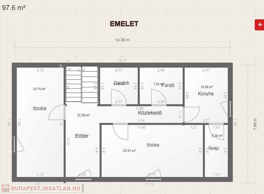 A ház 3 szintes egy belső lépcsőház köti össze a 3 szintet. Ezen keresztül juthatunk fel a tetőtérbe és le a szuterén szintre is. A tetőtérben könnyedén meg lehet oldani egy külön külső bejárat kialakítását, így a ház teljes mértékben KÉTGENERÁCIÓS otthonként is funkcionálhat.
