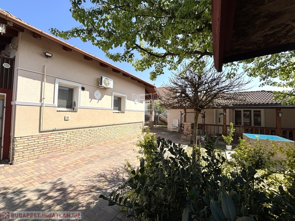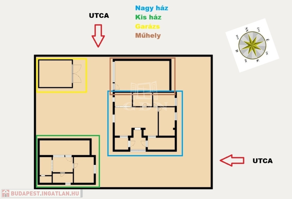 ELADÓ Nyáregyházán, 535 m2-es telken, KÉT KÜLÖNÁLLÓ ÉPÜLETBŐL álló, összesen közel 100 m2-es ingatlan – SOKOLDALÚ HASZNOSÍTÁSI LEHETŐSÉGEKKEL. A két ház vegyes falazatú, a nagyobb 64 m2-es, 2+1 szobás, a kisebb 30 m2-es, 1 szobás ÖSSZKOMFORTOS.