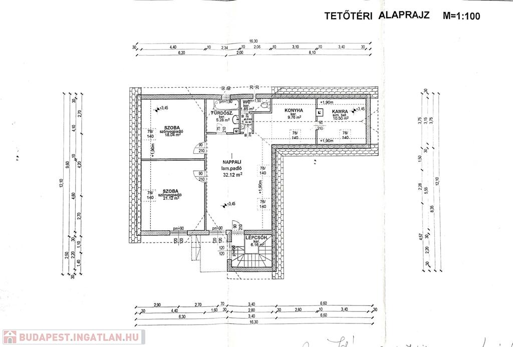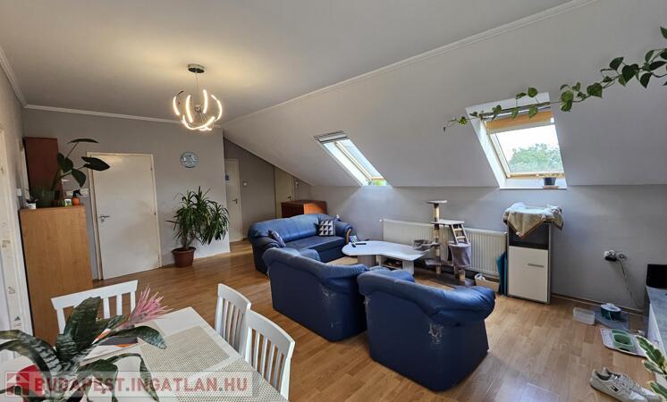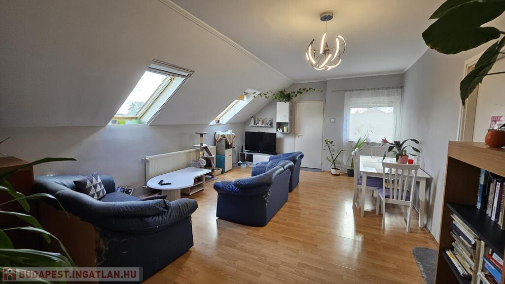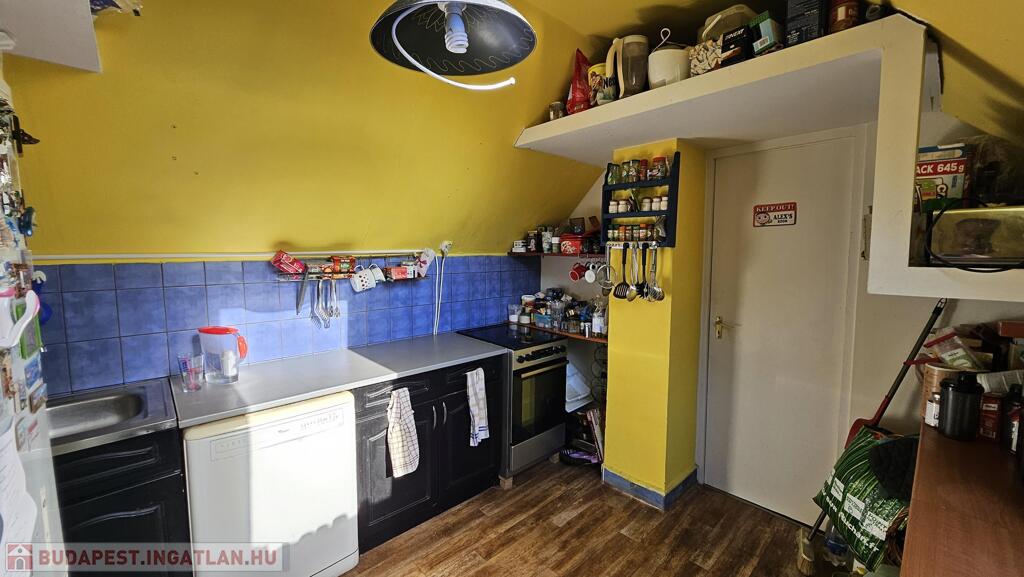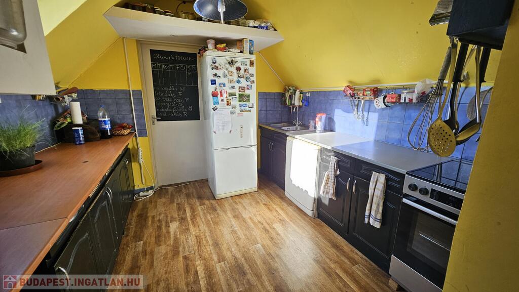 tetőtér 85 m2: előszoba, 2 szoba, nappali, fürdőszoba, WC, konyha