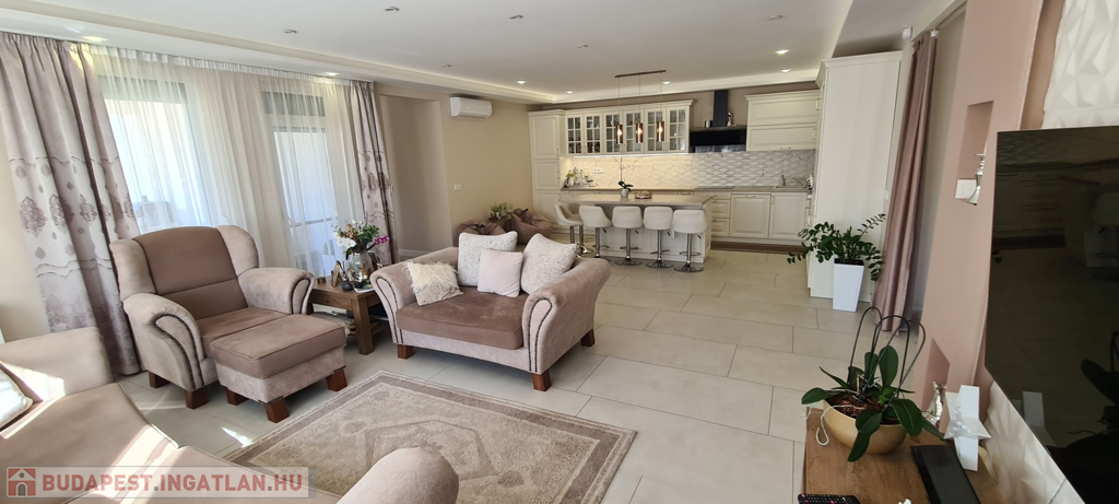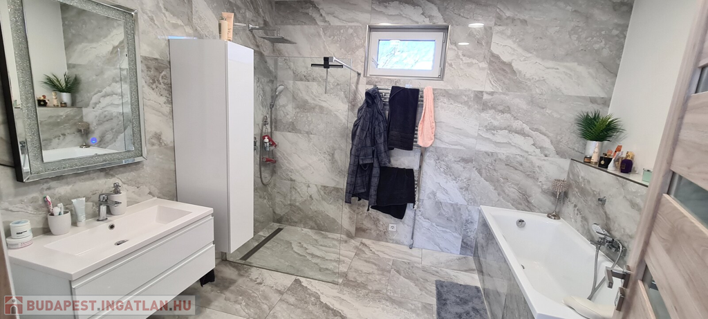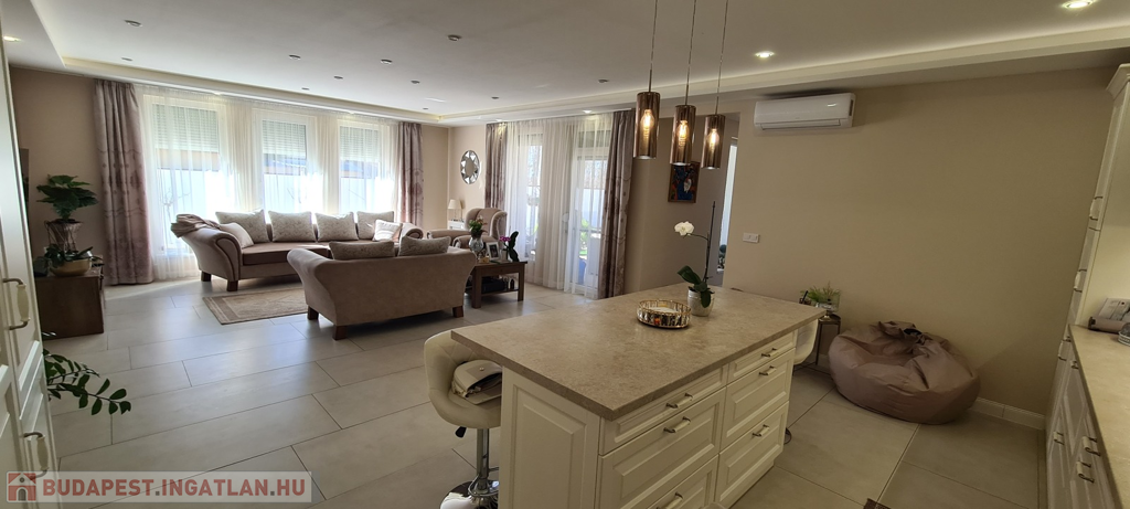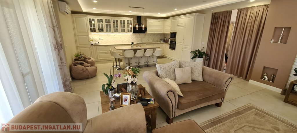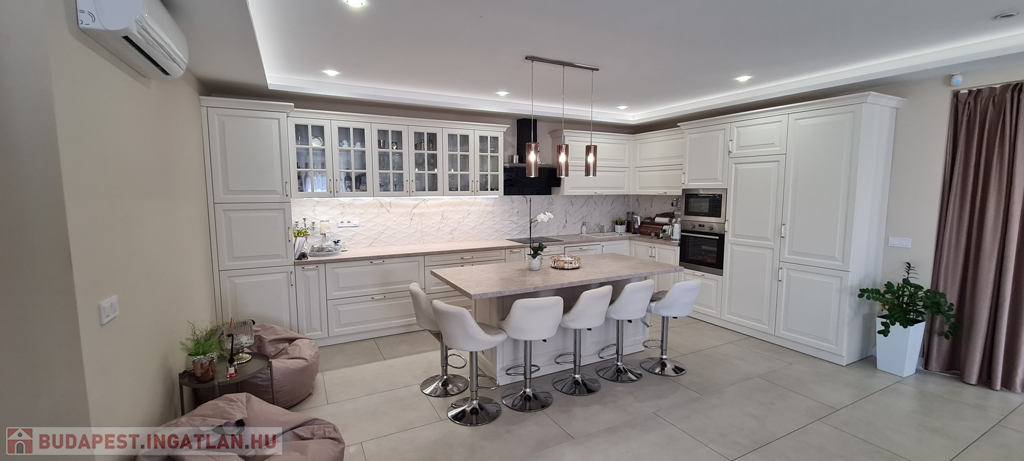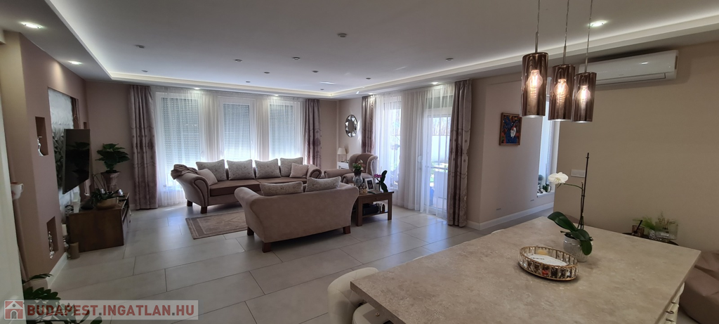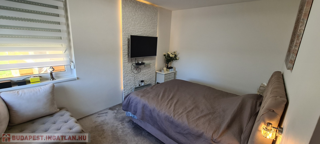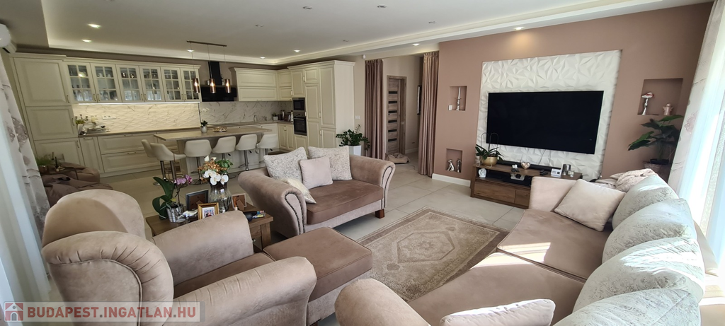 Az ingatlant magas minőségű anyagok felhasználásával, saját részre építették a tulajdonosok, Porotherm tégla falazatú 10 cm külső szigeteléssel,  gáz cirkó padlófűtéses, egyedi gyártású konyhaszekrénnyel, energiatakarékos gépesítéssel, hűtő-fűtő klímával, riasztóval, kamerarendszerrel, kamerás kaputelefonnal, házat körülvevő lézersorompóval, udvaron mozgásérzékelős kültéri lámpákkal felszerelt.A ház 3 szoba, nappali-konyha-étkező teraszkapcsolattal,  2 fürdőszoba, háztartási helyiség, garázs elrendezésű. Az udvaron kerti sütögetésre alkalmas szalonnasütő, kemence, könnyűszerkezetes tároló is helyet kapott.