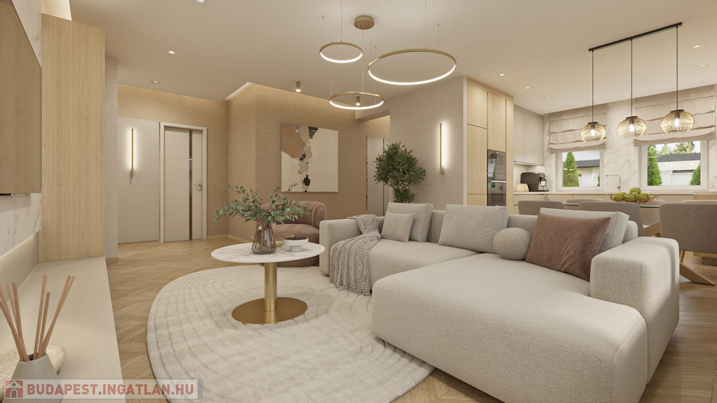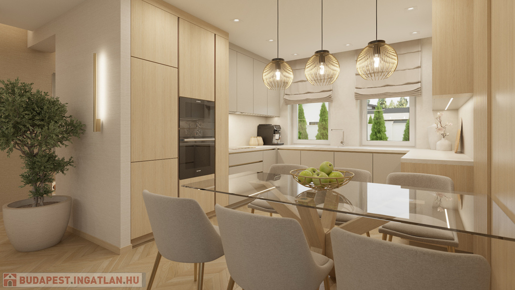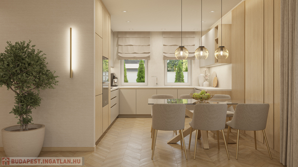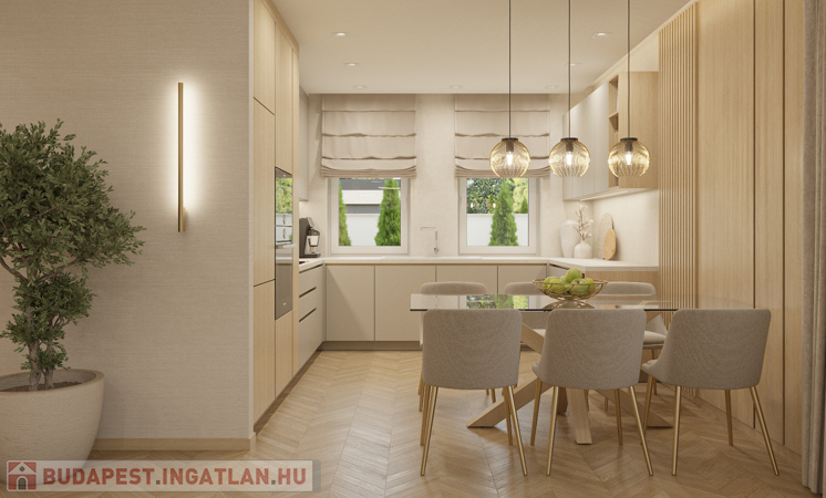 Az ingatlan teljesen gépesítve, lakberendező által megtervezett, egyedi bútorzattal kerül átadásra, így az új tulajdonosnak valóban csak költöznie kell. A gondosan kialakított enteriőr és a beépített konyhai gépek a mindennapi komfortot szolgálják.