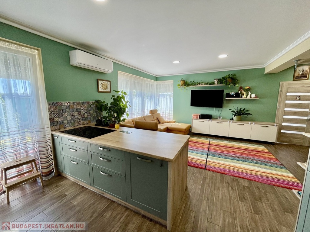A ház szigetelt, tégla falazatú, újszerű állapotú, 2024-ben épült, 144 nm, hőszivattyús fűtéssel, minden helyiségben klíma vezeték előkészítéssel, melyből 2 db beépítésre került, részben elektromos redőnnyel szerelt, műanyag nyílászárós, laminált padló, járólap burkolatú.