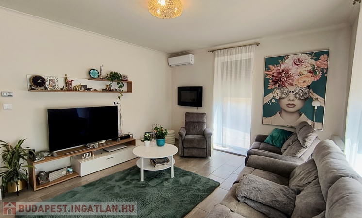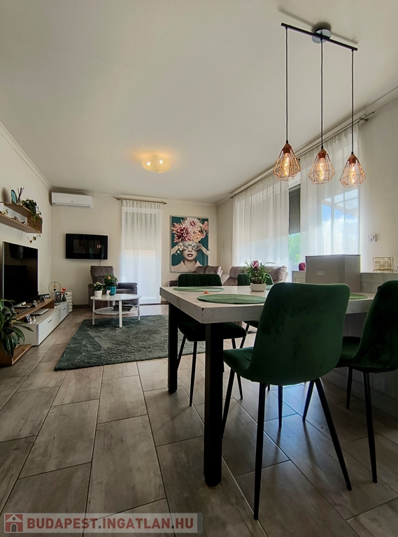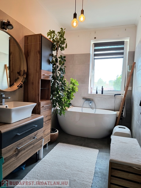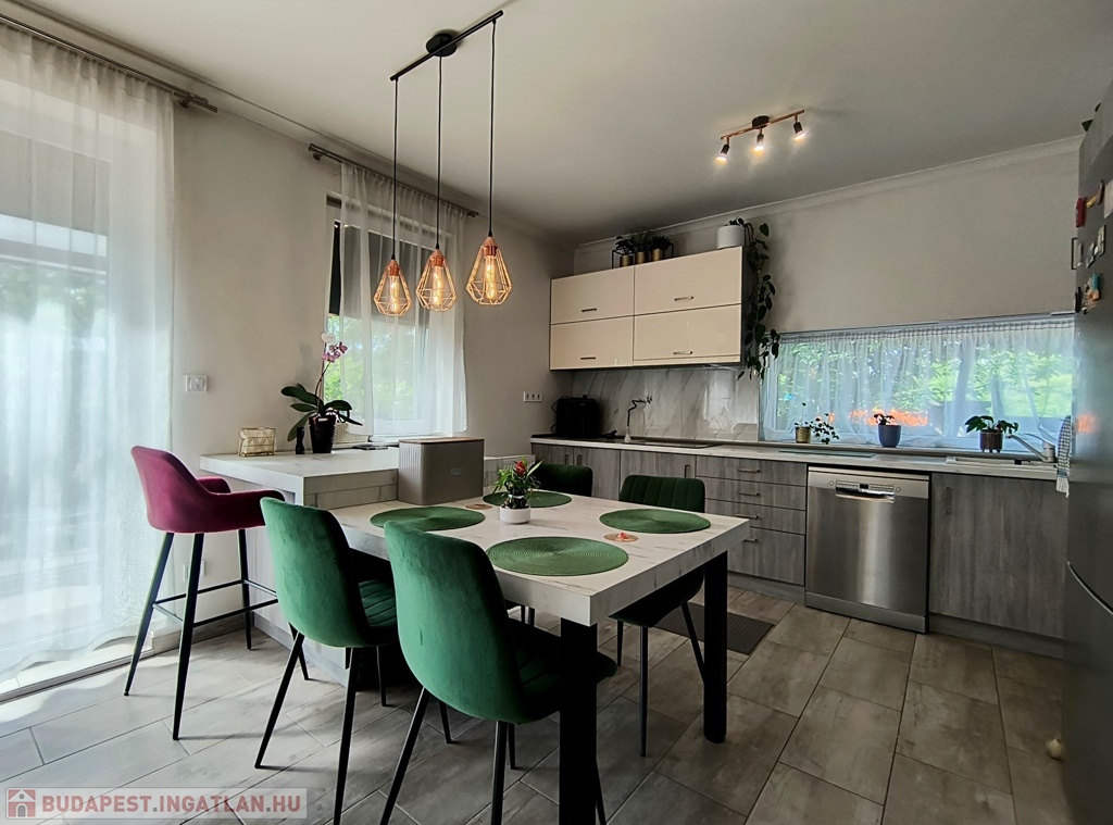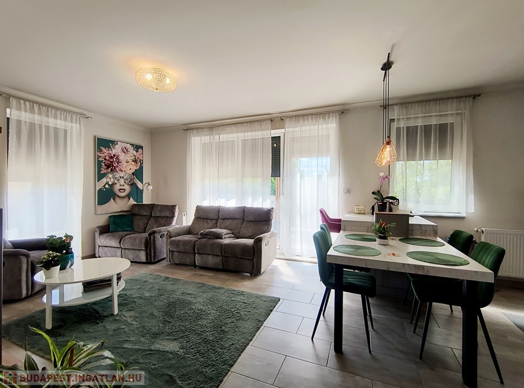 Nyíregyháza Belváros, Plázához közel, 2019 ben épült, 145 nm-es, 4 szoba + Nappali étkező konyha egy légtérben, 2 fürdő és 2 wc, gardróbszoba 2 db terasz, járólap és laminált parketta burkolattal, egyedi gázfűtéses kondenzációs gázkazánnal, 3 réteg üvegezésű műanyag nyílászárókkal redőnyözve, 3 db inverteres klímával, 15 cm-es grafitos homlokzati szigeteléssel ellátott ikerház, részben térkövezett 552 nm-es telken, 28 nm-es átmenő automata szekcionált kapuval ellátott garázzsal eladó.