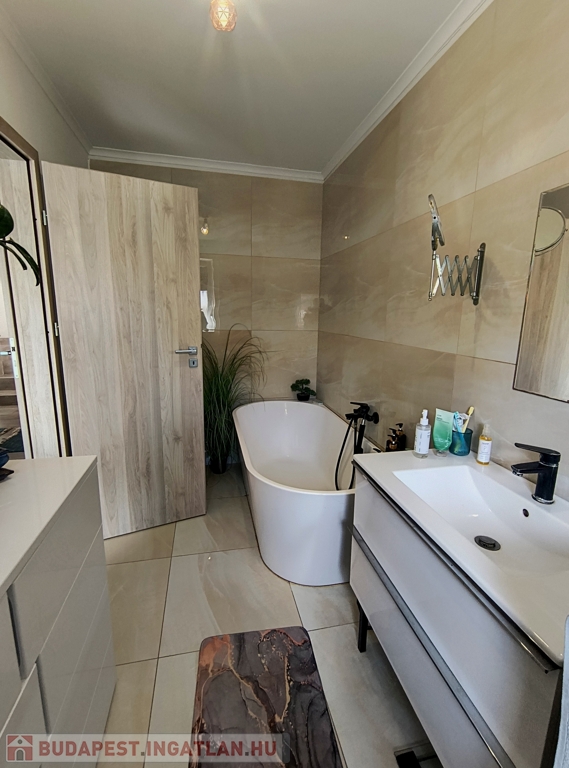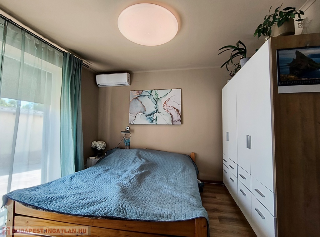 Emelet: 3 külön nyíló szoba, külön fürdő és wc, előszoba, 33 nm-es napozó terasz