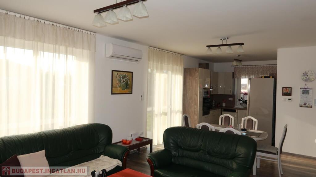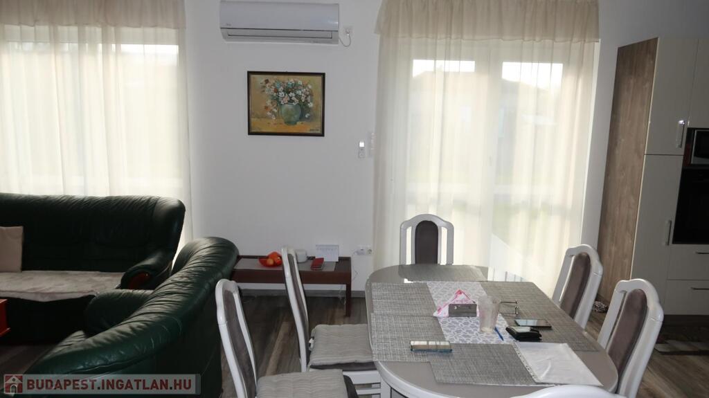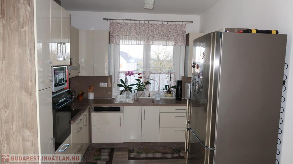 Nyíregyháza-Oros csendes környékén, 2019-ben épült, 143 m2-es 3 szoba, nappalis, nagy teraszos önálló családi ház , plusz 144 m2-es gazdasági épület., valamint 32 m2-es garázzsal, kiváló állapotban, 8500 nm-es telekkel eladó. Az ingatlanba prémium minőségű anyagok kerültek beépítésre. A rendkívül jó elosztású ház tágas, világos, déli fekvésű nappalival, egyedi, kiváló minőségű beépített konyhával, spájzzal, két fürdőszobával. mosókonyhával és gardrób szobával rendelkezik. Az otthon melegét egy gyönyörű cserépkályhán kívül infra padlófűtés adja. Az ingatlan teljes elektromos fogyasztását 11, 6 KW-os napelem biztosítja, mely igény esetén 20 %-al bővíthető, ezért csupán a víz és csatornadíj jelenik meg havi rezsi költségben. A főépület 20 cm-es szigeteléssel ellátott, műanyag nyílászárók kerültek beépítésre, az energetikai besorolása CC. Gazdasági épület bruttó 144 m2 alapterületű, mely áll egy 88 m2 egylégterű helyiségből, valamint konyha, mosdó és WC helyiségekből áll. Fűtése infra panel és klíma. A gazdasági épület bármilyen célra hasznosítható, ugyanolyan anyagokból épült, mint a családi ház, így akár lakás célra (kétgenerációs lakhatás) is átalakítható. A fűtése infra panel, a szigetelés 15 cm. Az udvar parkosított, öntözőrendszerrel ellátott, a bejárat automata kapuval van felszerelve. Amennyiben szeretne csendes helyen, jó levegőn lakni és felkeltettem az érdeklődését, bátran hívjon!Az ingatlan azonosítója: 90945Érdeklődni: +36703610015 Az ingatlan azonosítója: 90945 Érdeklődni: +36703610015