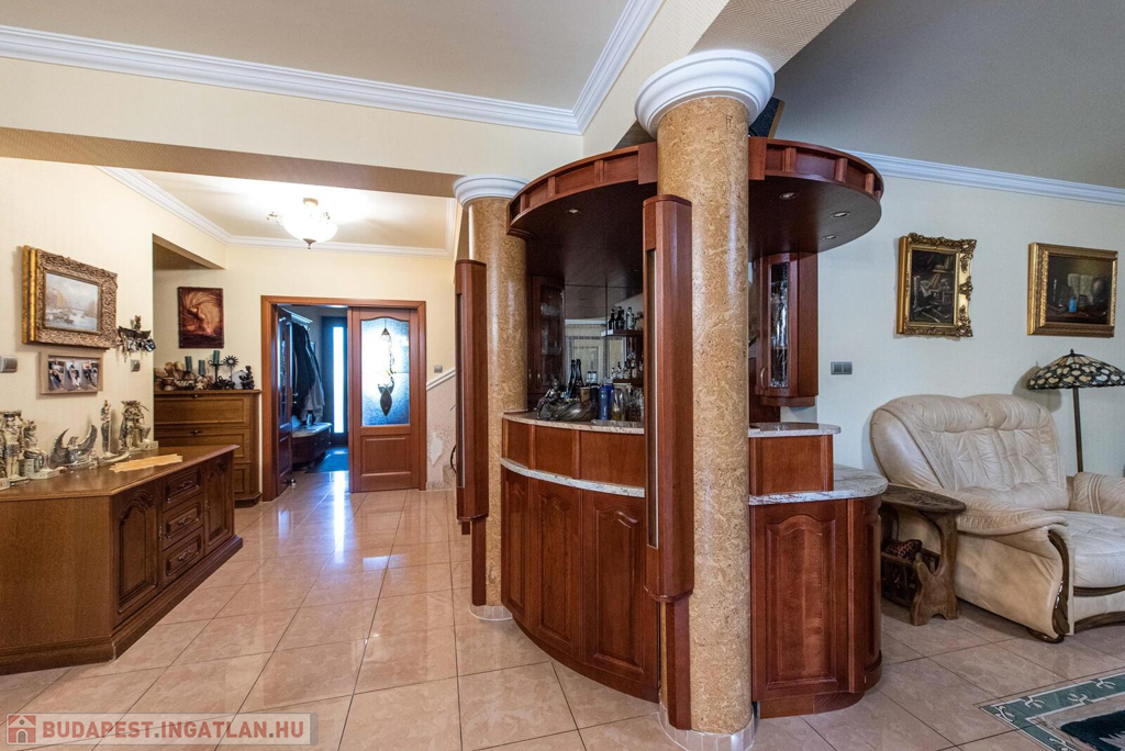 Nyíregyházán Praktiker közelében 620 nm-es, ebből 300 nm hasznos alapterületű egyedi kialakítású és felszereltségű, miden igényt kielégítő, tégla építésű 4 szoba, nappalis, amerikai konyhás mediterrán típusú családi ház, műanyag nyílászárókkal, elektromos redőnyökkel, beépített szekrényekkel, kamerás riasztóval, 4 fürdőszobával, Wiesmann gázkazánnal, automatizált rendszerrel, helységenként külön vezérelhető, légcsatornás klímával, zárt épületben 6x20x1,7 m feszített viztükrű medencével, , melynek fűtését Wiesmann napkollektor biztosítja, 11,5 Kw-os busz napelem rendszerrel, automata öntözőrendszerrel, filagóriával, konditeremmel, téli kertel, gyönyörűen parkosított 3572 nm-es telken komoly érdeklődőnek eladó! Az ingatlan teljes bútorzata külön megállapodás részét képezi !Amennyiben felkeltettem érdeklődését, keressen bizalommal!Az ingatlan azonosítója: 64172Érdeklődni: +36306982324 Az ingatlan azonosítója: 64172 Érdeklődni: +36306982324