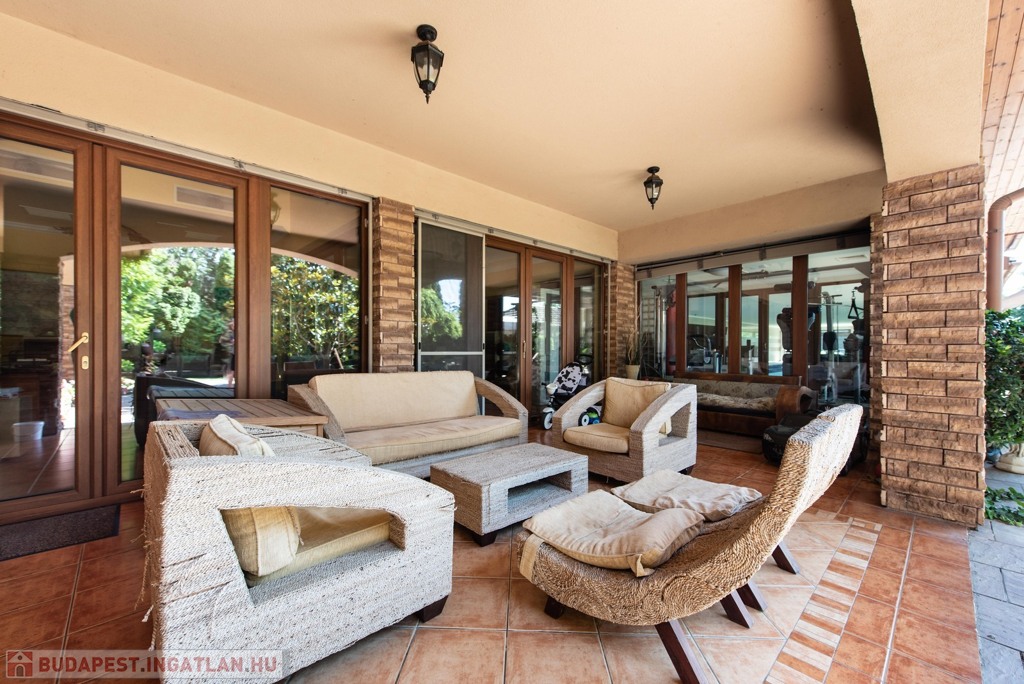 A teraszkapcsolatos nappali szintjén továbbá egy 45nm-es iroda helyiség, 40 nm-es konditerem valamint egy mediterrán hangulatú wellness rész, zárt medencével, infra és finn szaunával, élményzuhanyzókkal szolgálja az itt lakók kényelmét. Az ingatlan fűtéséről 2 db kondenzációs kazán, 11,2 kw-os napelem rendszer gondoskodik.