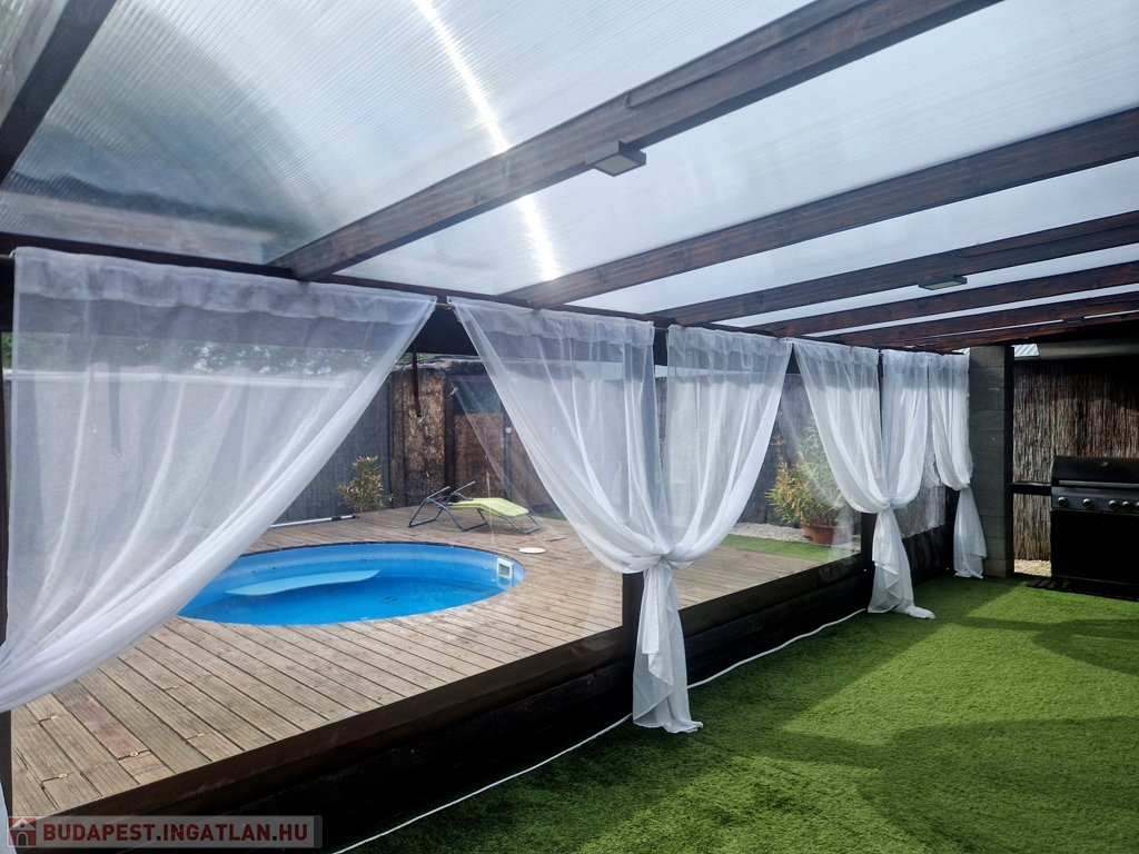 Továbbá az ingatlan területén található 2 különálló, gondozott kert is, ahol hangulatos filagória és medence wellness részleggel biztosítja a pihenést, plusz egy természetes halastó is, ami 20m × 10m-es vízfelülettel várja a kikapcsolódásra vágyókat.