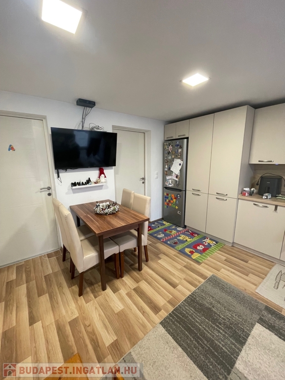 Az ingatlan szoba nappalis, elrendezése praktikus és kényelmes. A szobák laminált padlóval, míg a közlekedők és a vizes helyiségek járólappal burkoltak. A fürdőszoba és a WC külön helyiségben kapott helyet, ami tovább növeli a komfortérzetet.