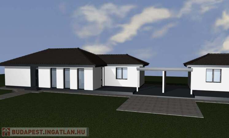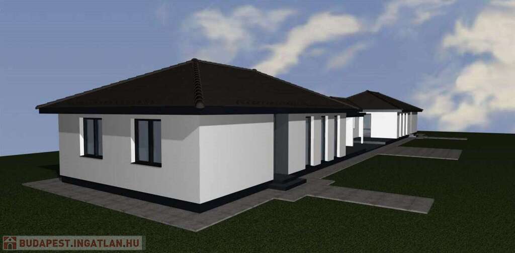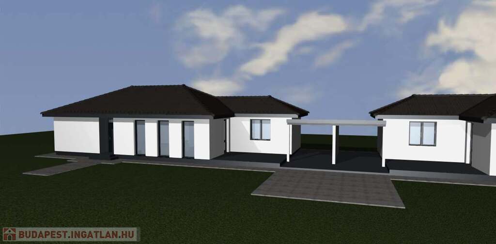1 ingatlan: 90 nm + 17 nm Garázs Nappali, Étkező, Konyha + 3 szoba. 500 nm-es telek 65 M FT.