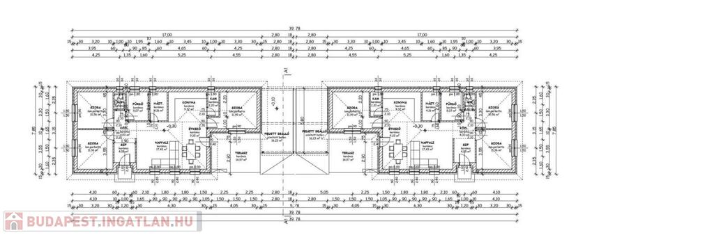 2 ingatlan: 90 nm + 17 nm Garázs Nappali, Étkező, Konyha + 3 szoba. 1500 nm-es telek, 69 M FT.