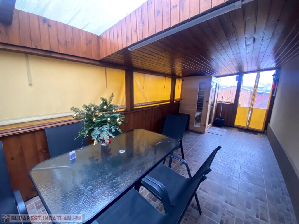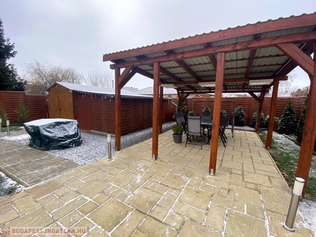 A lakótérhez egy 27 m²-es terasz kapcsolódik, valamint a kertben helyet kapott egy 24 m²-es fedett filagória, amely kiváló helyszíne lehet családi és baráti összejöveteleknek.A pihenést és feltöltődést saját szauna teszi teljessé.