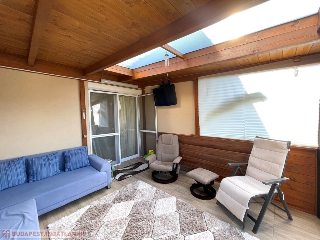 Az ingatlan részben bútorzattal együtt eladó: a házban elhelyezett bútorzat jelentős része egyedi gyártású, melyek kialakítása és megjelenése harmonikusan illeszkedik az ingatlan belső tereinek stílusához, ezért ezek a vételár részét képezik.