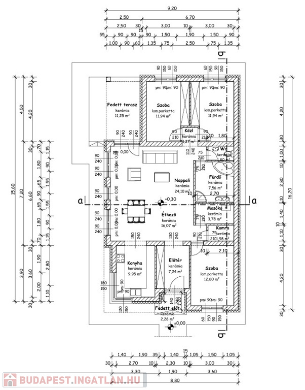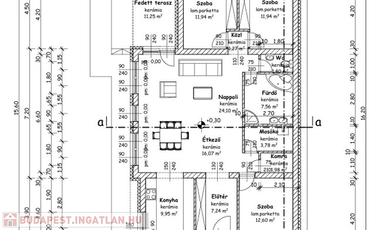 Nappali–konyha–étkező: - fedett teraszkapcsolattal,