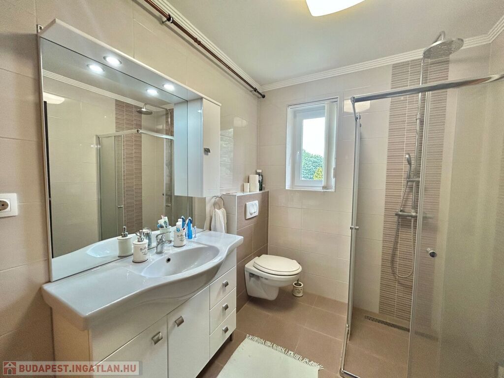 Az ikerház 230 nm., 2021-ben épült, 350 nm-es saját telekterülettel rendelkezik, mely parkosított, öntözését fúrt kút és öntözőrendszer biztosítja.