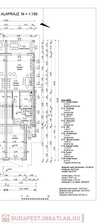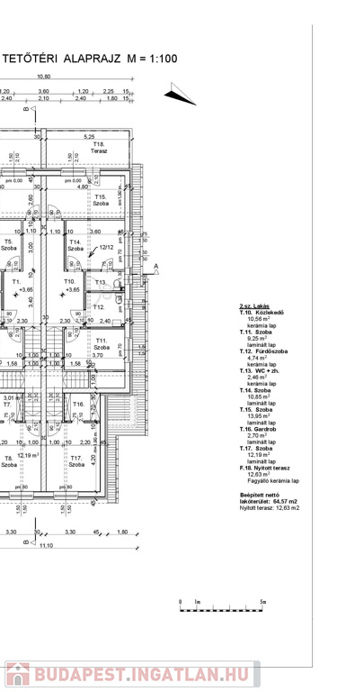 Földszinten: előtér, gardrób, nappali - konyha-étkező, melyhez fedett terasz kapcsolódik illetve 20 nm-es garázs.Emeleten: 4 hálószoba, gardrób, fürdőszoba és közlekedő található.