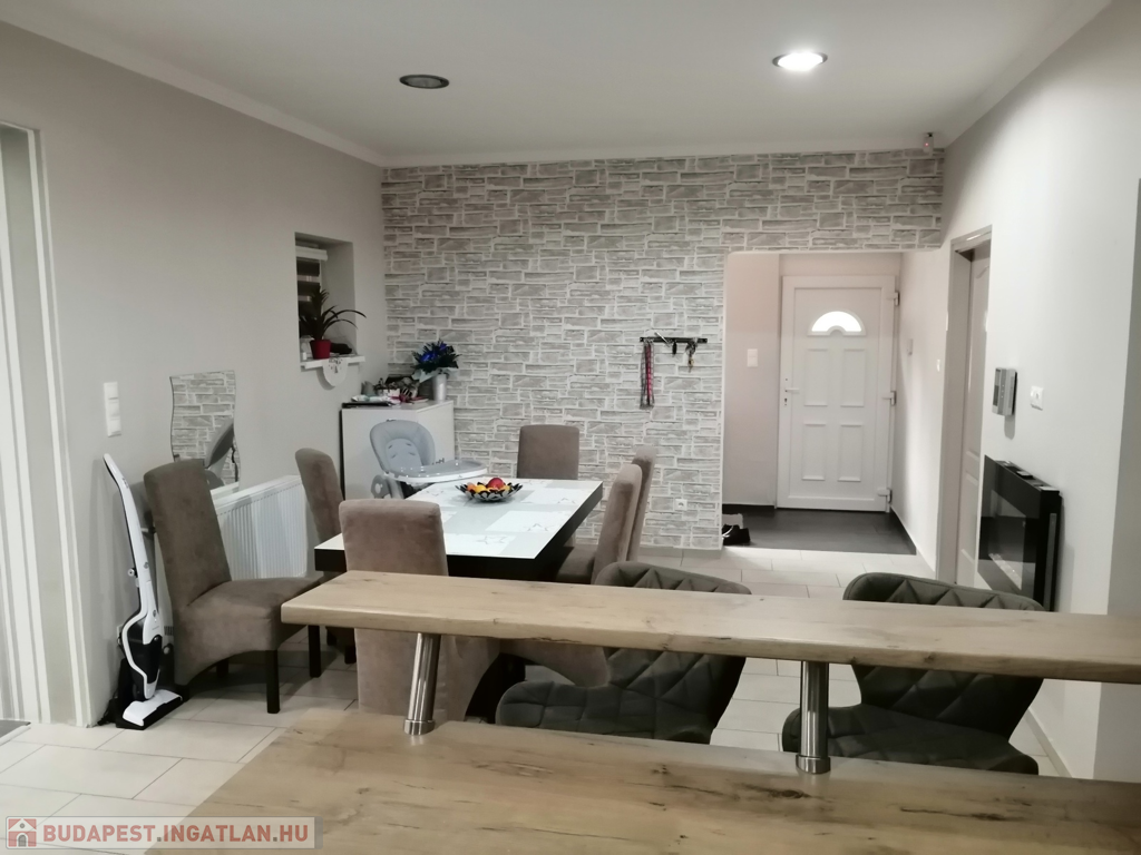 Nyíregyházán, a kórház közelében, 2 generáció számára is alkalmas, 97+64 nm-es, földszintes, 3 szoba + nappalis, egyedi gázfűtéses, szép állapotú, duplakomfortos családi (iker) ház, 520 nm-es telekkel eladó. További jellemzők: a 2019-ben felújított épület hőszigetelt, logikus-, jól élhető belső elosztású, tágas nappali-konyha-étkező egy légtérben, új beépített/gépesített konyhabútor, a szobák külön nyílnak, gardróbhelyiség (egy fél szoba alakítható ki belőle igény esetén), szép padlóburkolatok (járólap és laminált padló), műanyag nyílászárók (redőnnyel), 2 db klímaberendezés (hűtő/fűtő), riasztórendszer, modern fürdőszoba (sarokkáddal és épített zuhanyzóval, a WC külön helyiségben található), a nappaliból fedett terasz (20 nm-es) és kertkapcsolat. Az egyik szoba elszeparált, ehhez tartozik egy fürdőszoba (zuhanyzóval), és egy külön helyiségben lévő WC. A térkövezett és parkosított udvaron/kertben egy nagy méretű filagória (45 nm) található (beépített kemencével, kerti konyhával), egy szalonnasütő/főzőhely is rendelkezésre áll, valamint egy süllyesztett, kisebb méretű medencét is elhelyeztek. Az udvaron fedett gépkocsibeálló is található (2 autó részére is alkalmas). A beépített-jellegű bútorzat, és gépesítés marad az ingatlanban, azok értékét az irányár már tartalmazza. Vevőink számára az ingatlanközvetítés díjtalan, a vásárlással kapcsolatos mindenfajta ügyintézésben segítséget nyújtunk! Hivatkozási szám: 61615Az ingatlan azonosítója: 61615Érdeklődni: +36707893944 Az ingatlan azonosítója: 61615 Érdeklődni: +36707893944