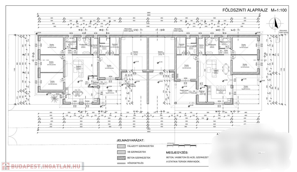 25,6 m²-es garázs, amelyen keresztül érintkezik a szomszéd ikerházzal