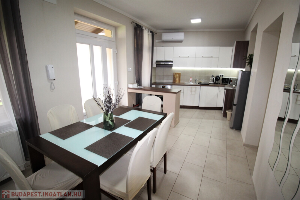 Az ingatlan külsőleg hőszigetelt, klimatizált, műanyag nyílászárókkal, LED fényforrásokkal, egyedileg tervezett beépített-gépesített konyhabútorral felszerelt.Az apartmanház kettő részre van osztva, minden közmű külön van, az első része 75 nm-es, 6 személy részére kialakított ebben, konyha-étkező, 2 tágas hálószoba, fürdőszoba, külön WC, kapott helyet.A másik rész 55 nm-es, ebben 4 személy részére kialakított, konyha-étkező, 2 hálószoba, fürdőszoba-WC került kialakításra.A házhoz tartozik még egy 20 nm-es fedett terasszal, parkosított udvar, 2 állásos garázs, valamint 5 autó parkolására kialakított terület.