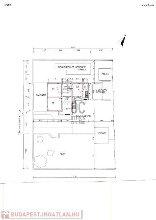 A ház 1201 m2 es telken található,melynek utcafront szélessége 37 m.