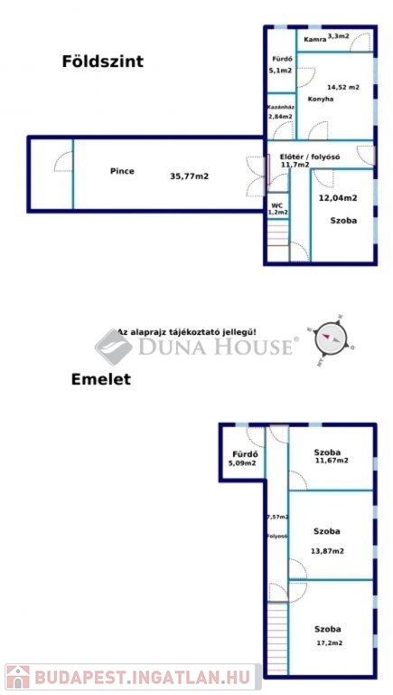 A két külön álló épület kisebbikje 65 m2, s jelenleg gazdasági épületként funkcionál. Szerkezetileg ép, s könnyen apartman, vagy külön lakrész alakítható ki belőle. A fő épület két szintes, összességében 110m2 hasznos alapterületű, s különös értéke, hogy a felső szint már most külön bejárattal is rendelkezik, de a házon belülről is megközelíthető. Így a felső szint külön apartman rész vagy fiatal generáció külön bejáratú lakása is lehet. Ezen a szinten 3 szoba, fürdőszoba, míg az alsó szinten 1 szoba, fürdőszoba, WC, konyha és egy hangulatos, száraz és tágas pince található.