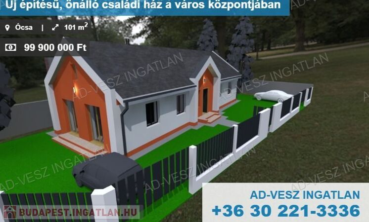 Eladásra kínálunk Ócsa központjában egy önálló, kulcsrakész, új építésű családi házat.
