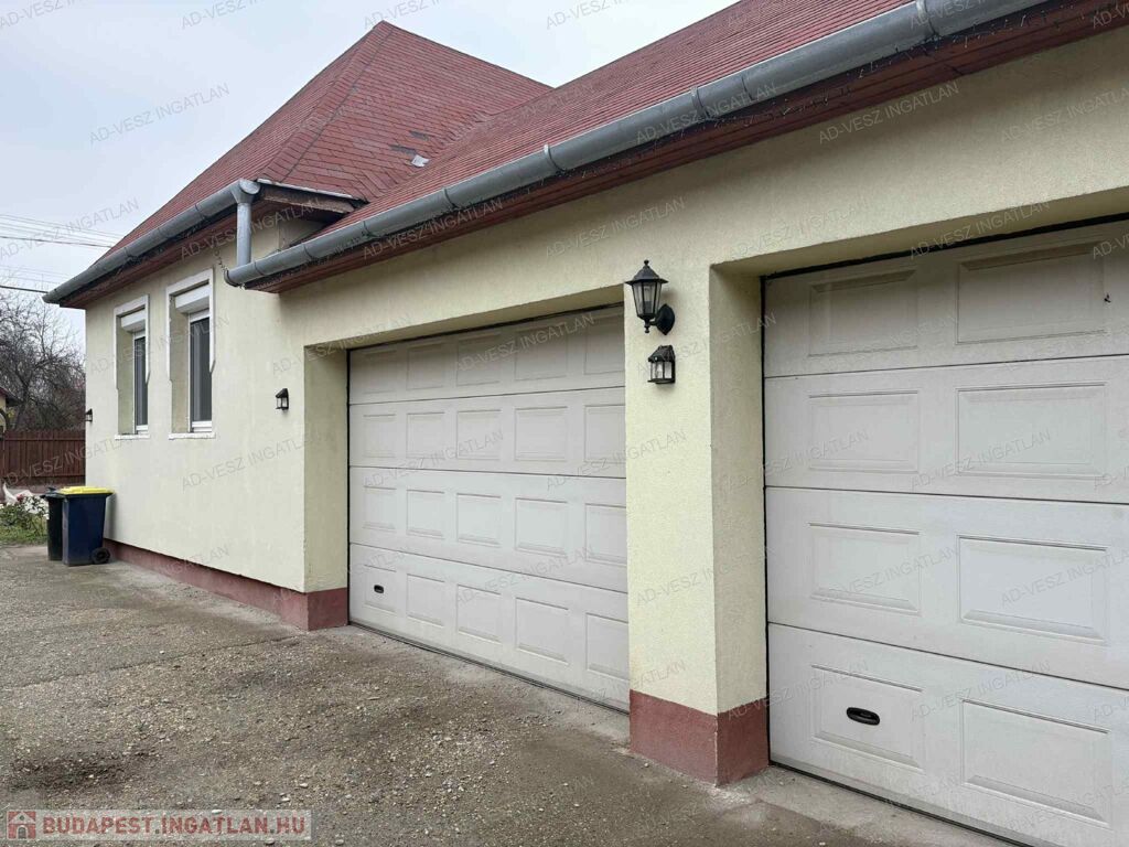 A parkolás szerelőaknás dupla garázzsal megoldott, mely 50m2-es.
