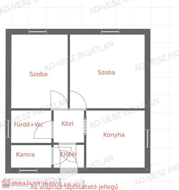 Az ingatlanban kialakításra került 2 hálószoba, fürdőszoba, konyha, előszoba, kamra, közlekedő.