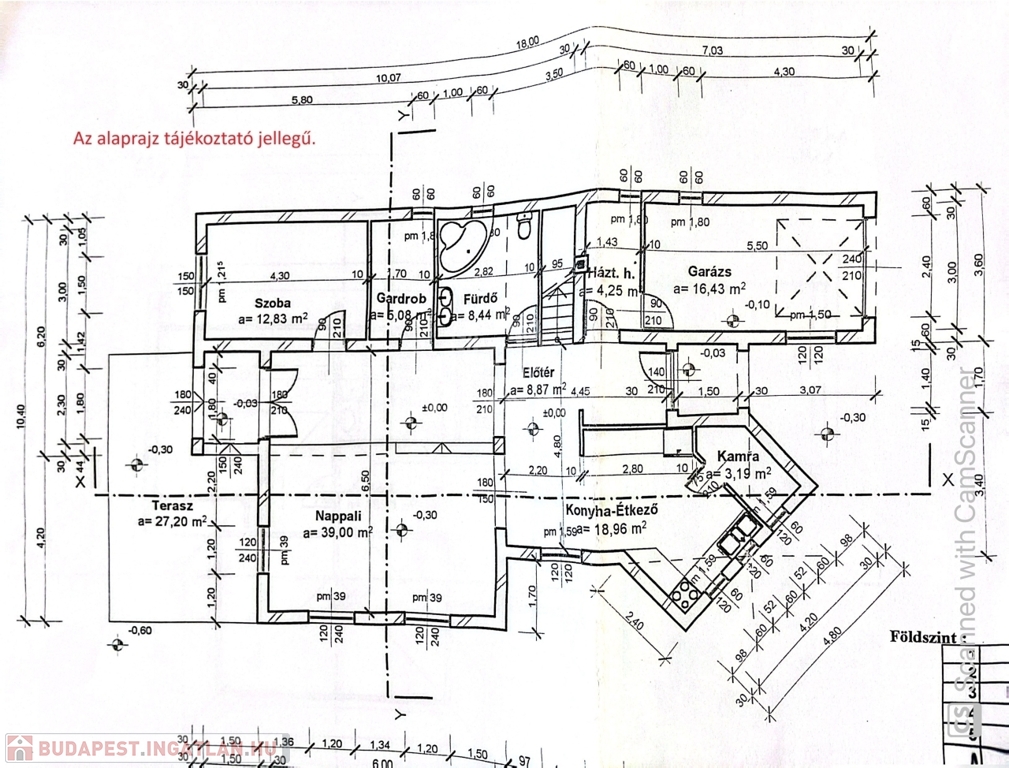 A földszinten helyett kapott egy hálószoba saját gardróbbal, fürdőszoba WC-vel, háztartási helyiség, ahonnan közvetlen átjárás vezet a 16 nm-es garázsba.