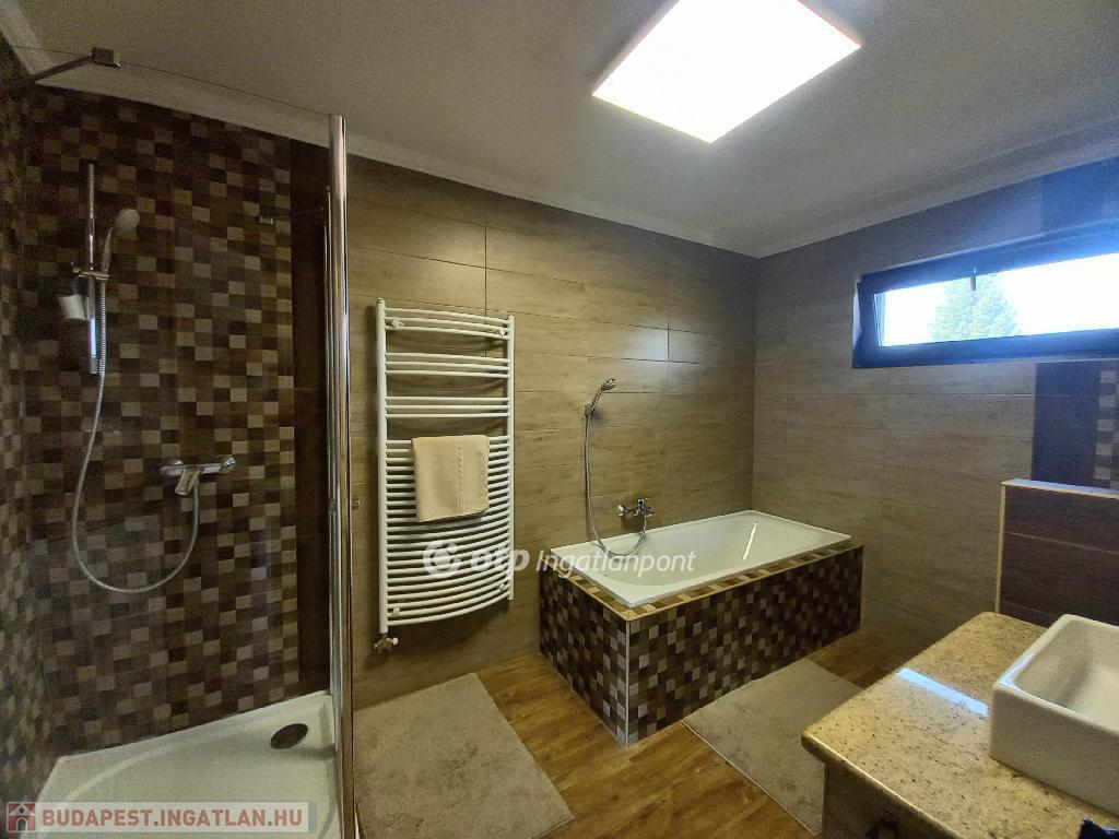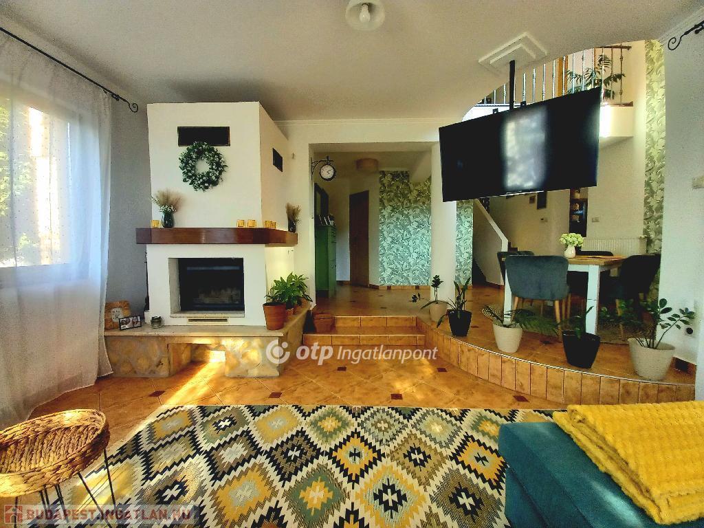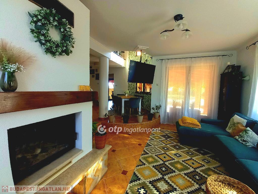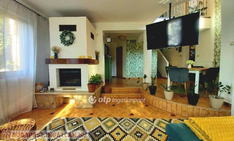 A ház belső kialakítása ötvözi a kényelmet, a stílusos eleganciát és a praktikumot. Az otthonosan berendezett, kandallóval is rendelkező, világos nappali ablakain át a fákkal és cserjékkel átgondoltan telepített udvarra tekinthetünk ki. Az egységes belső kialakítás és színvilág teremti meg azt a hátteret, amelybe a modern bútorok harmonikusan illeszkednek. A földszintem még konyha, étkező, tárolók, dolgozószoba és fürdő is helyet kapott. A galériás emeletre érve három hálószobát és második fürdőszobát találunk.