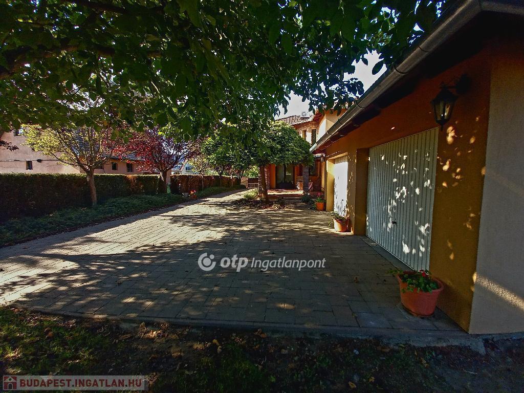 Az épületből az udvar felé egy hatalmas fedett teraszra lépünk ki, ami nemcsak összeköti a házat a kétállásos garázzsal, hanem a családi összejöveteleknek is bőséges helyet biztosít.