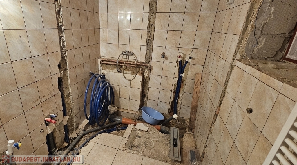 A fürdőszoba kialakítása elkezdődött, így az új tulajdonos saját ízlésére formálhatja.