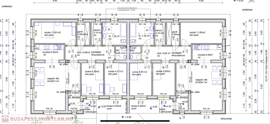 – Kondenzációs kazán, központi fűtés, műanyag nyílászárók