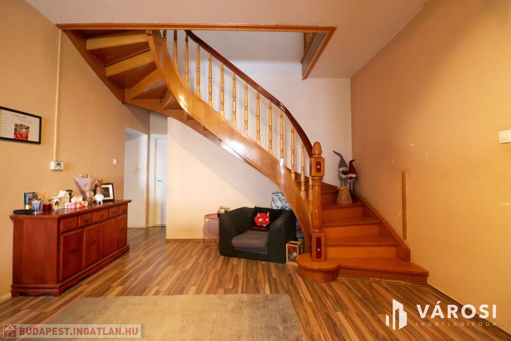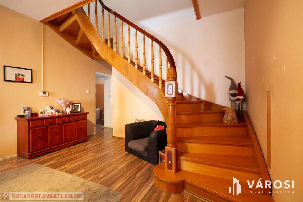A földszinten ~22,42 alapterületű nappalit, hálószobát, étkezőt és konyhát, fürdőszobát és külön Wc helyiséget, mosókonyhát találunk. Az emeleten 4 hálószoba, kényelmes társalgó, fürdőszoba és wc helyiség, kazánház található, valamint két tároló helyiség. a két szintet egyedi fa lépcső köti össze. Az ingatlan fűtését és meleg víz ellátását gázkazán biztosítja. A parkosított udvaron felújítandó állapotú melléképület, garázs, és fedett autóbeálló helyezkedik el.