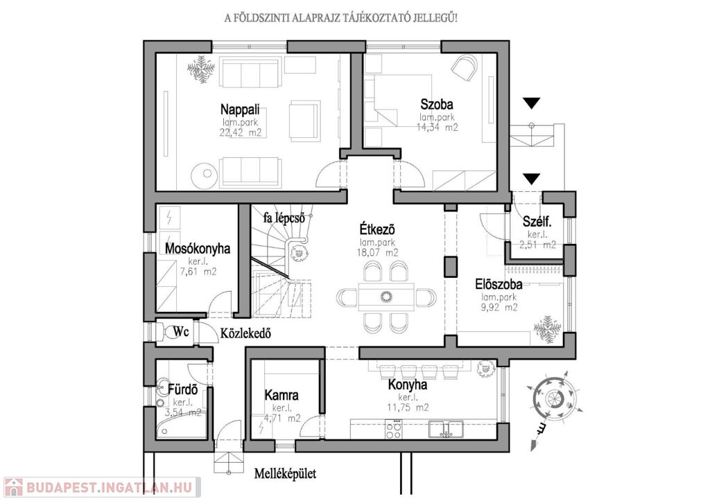 - Földszint: ~105,00 m2, (lásd: alaprajz)