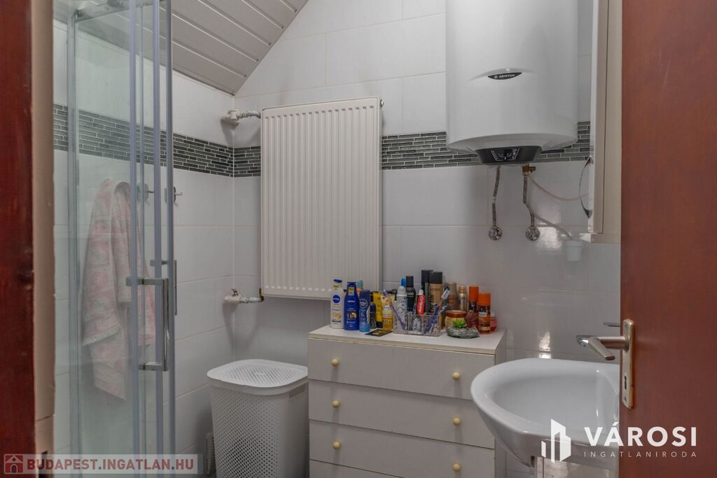- Két szint, két fürdőszoba – az alsó szinten fürdőszoba káddal és tusolóval, beépített padlófűtés modullal, az emeleten pedig modern tusoló új bojlerrel.