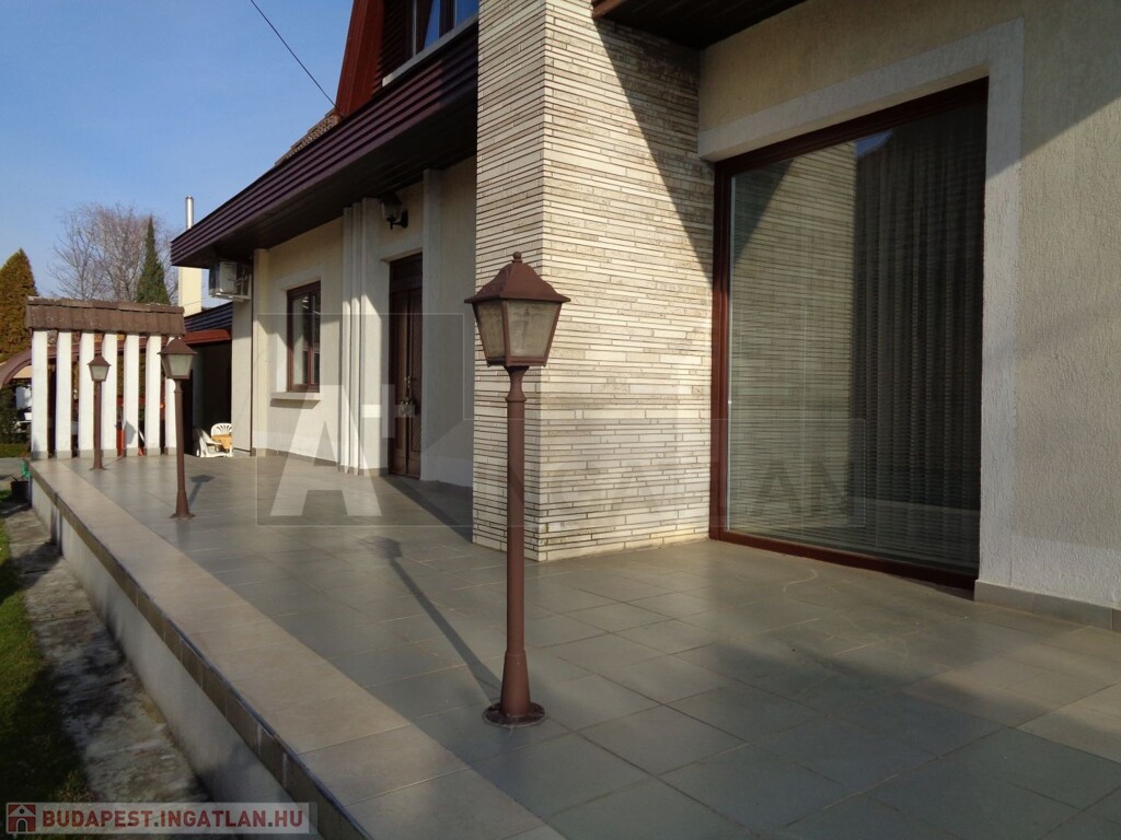 A ház meghosszabításában találunk egy 24 m2-es nyári konyhát, ahonnan kiléphetünk a szuper teraszra és a gyönyörűen parkosított udvarra, kertre. Mindez pedig egy nagyméretű garázzsal zárul. A kert ápolását fúrt kút és egy kerti szerszámtároló is segíti.